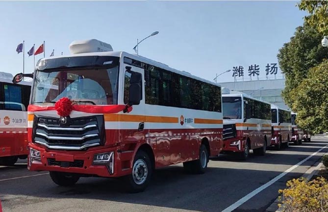 近日一批45台亚星YBL6860TE特种客车成功下线,并交付油田测井使用。
