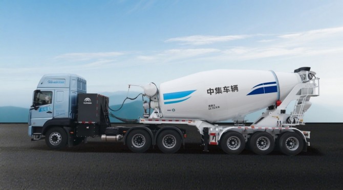 【图为纯电动头挂搅拌车】