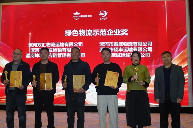 郑州大象货运服务有限公司获得新能源汽车应用先锋企业奖,沧州瑞昇运输有限公司获得物流与商用车合作共赢奖,跨越速运集团有限公司获得低碳节能示范企业奖,河北狮能新能源科技有限公司获得临港都市圈绿色物流企业奖。