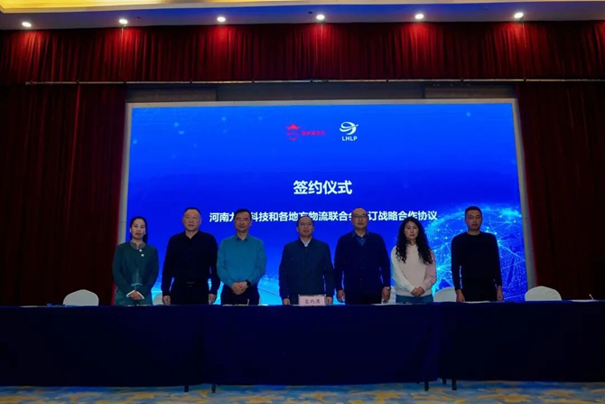 同时,现场还签订了战略合作协议,湖南争渡科技集团,河南九昱科技和各地市物流联合会签订战略合作协议。