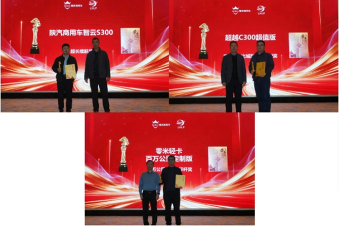 陕汽商用车智云S300获得超长续航奖,超越C300超值版获得最佳性价比城配物流车型奖,零米轻卡百万公里定制版获得百万公里可靠性标杆奖。